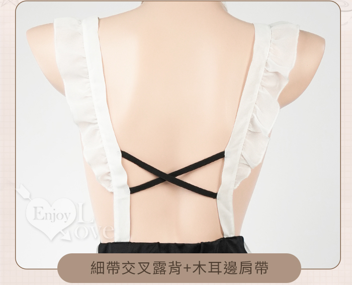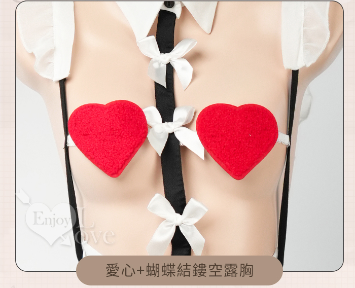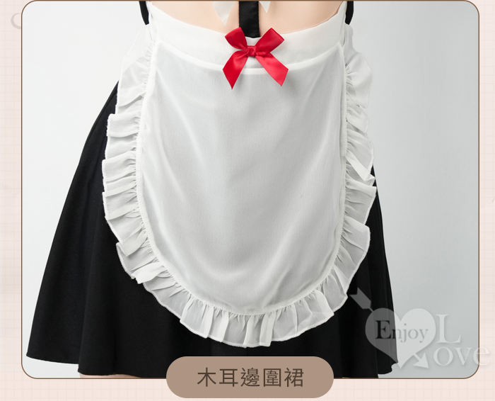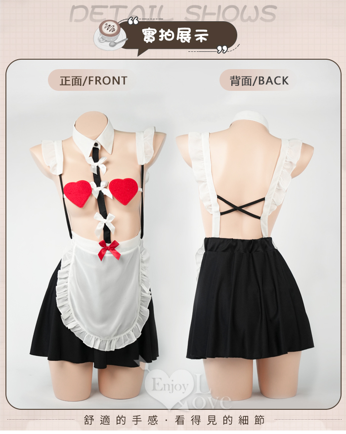 | 女僕角色扮演服!愛心美胸木耳花邊圍裙性感露背四件式套裝