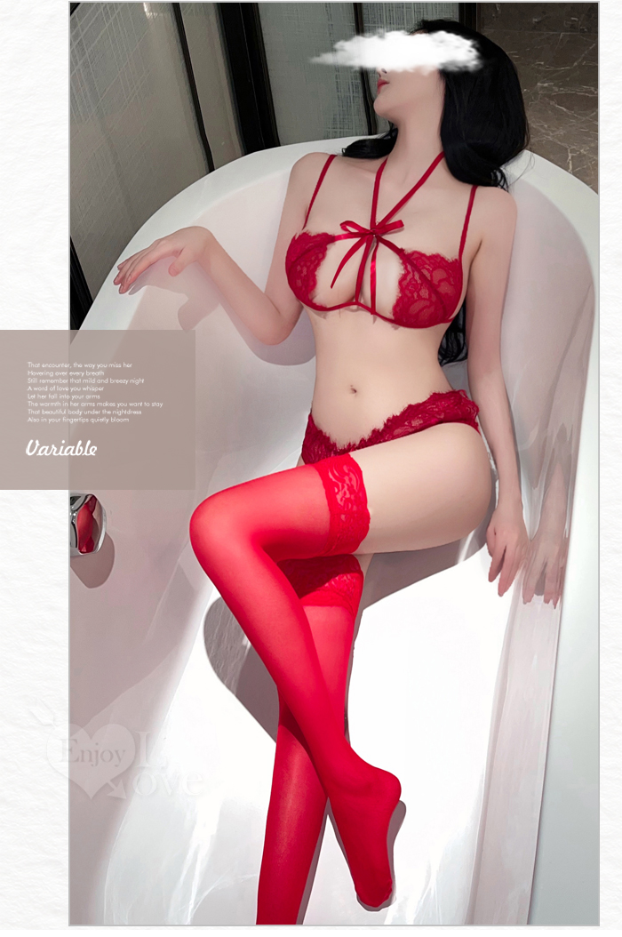 情趣比基尼!蜜乳尤物細帶花蔓蕾絲蜜桃裸臀三件組﹝紅﹞