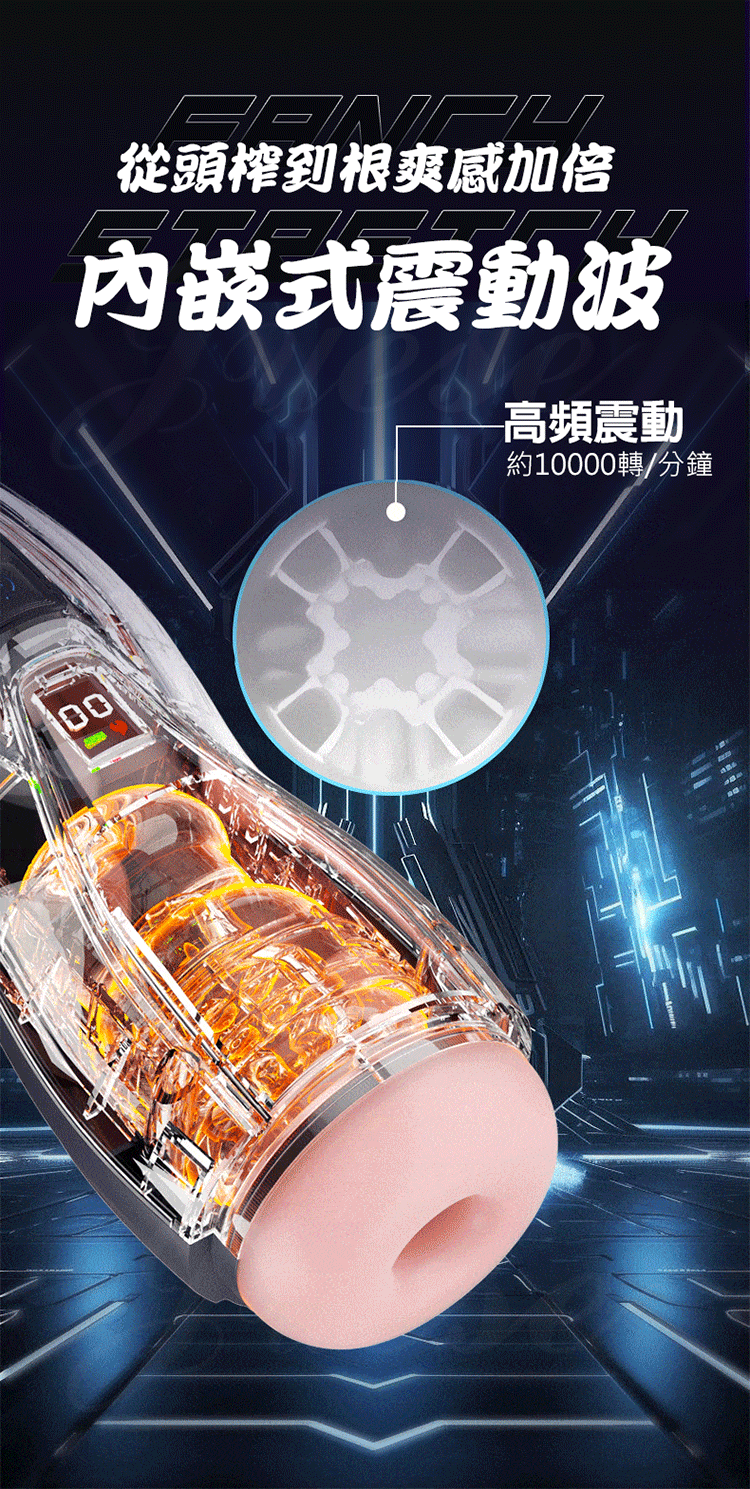 仿真肉感材質,5D加厚包裹內膽,記錄每次伸縮率,全智能黑科技,強勁伸縮狂飆榨汁,急速肉感伸縮。
