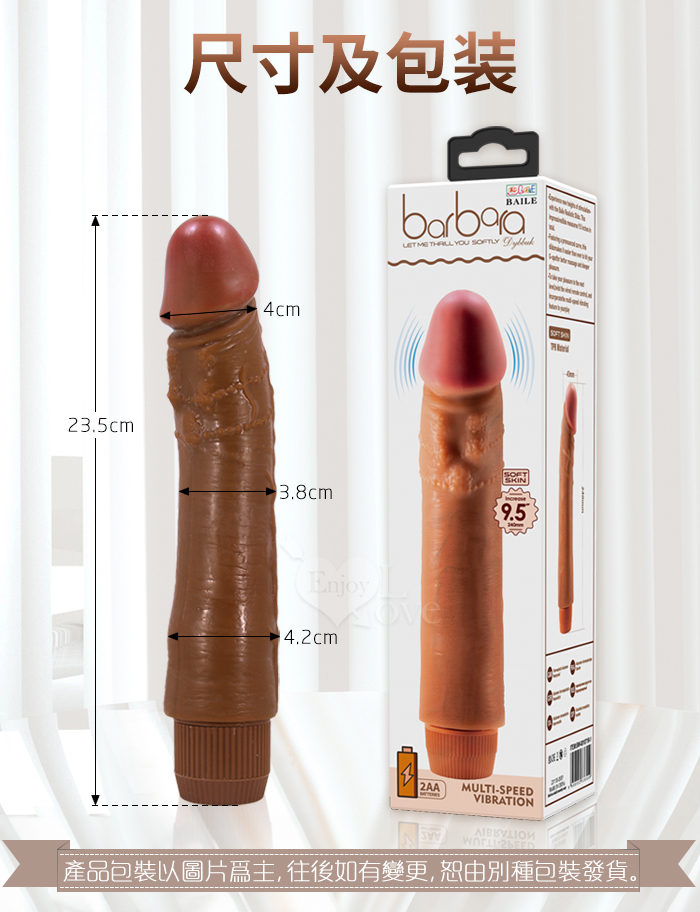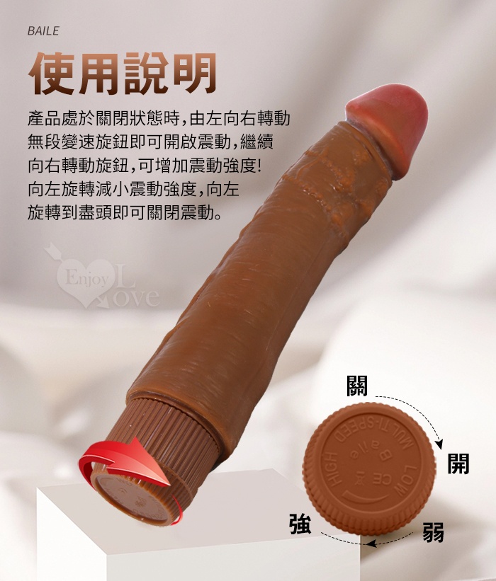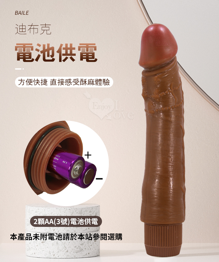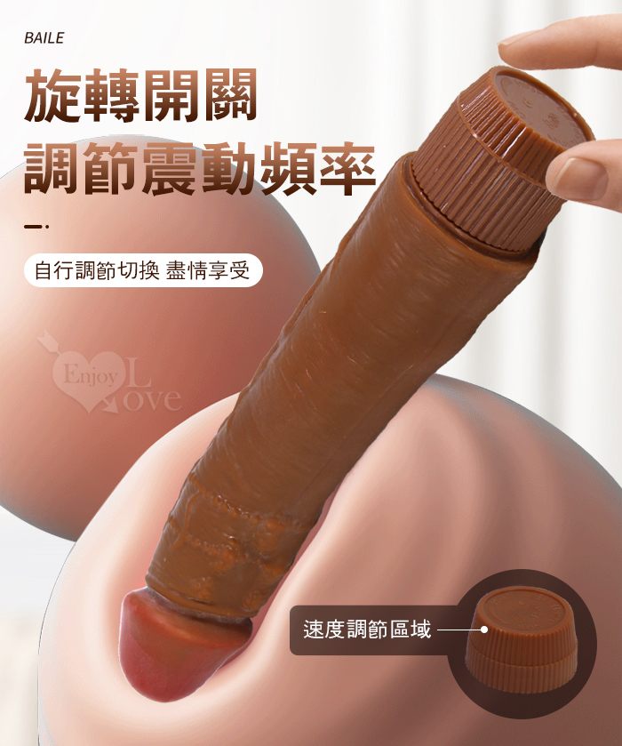 ►您現在的位置:首頁>【BAILE】Dybbuk 迪布克 9.5英吋無極微調震動 褐色肌仿真老二按摩棒