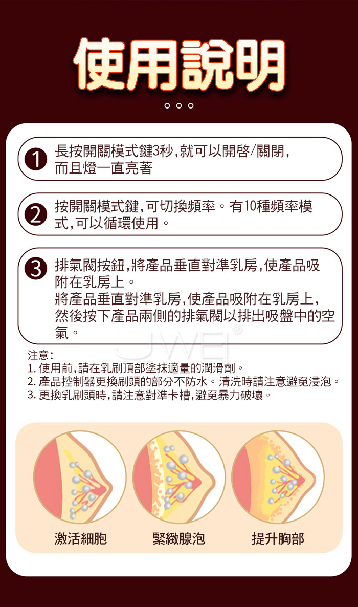 按壓抽調內部空氣牢牢吸附,緊貼皮膚,三種替換頭,不一樣的愉悅感受