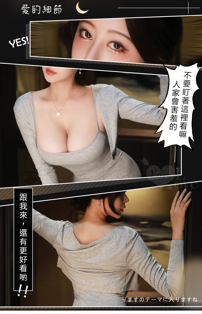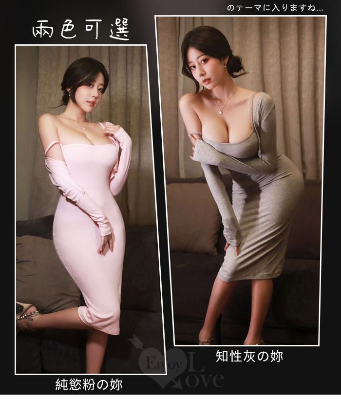情趣睡衣!火辣露胸短版外罩衫細肩帶及膝長裙兩件組﹝灰﹞