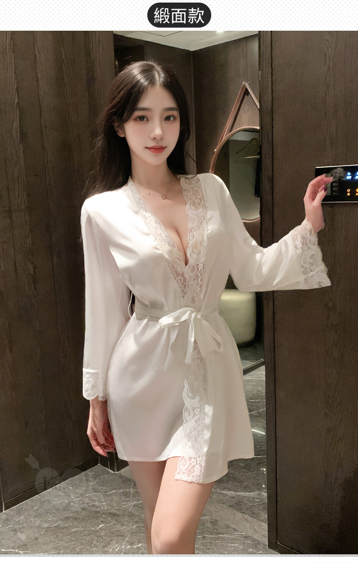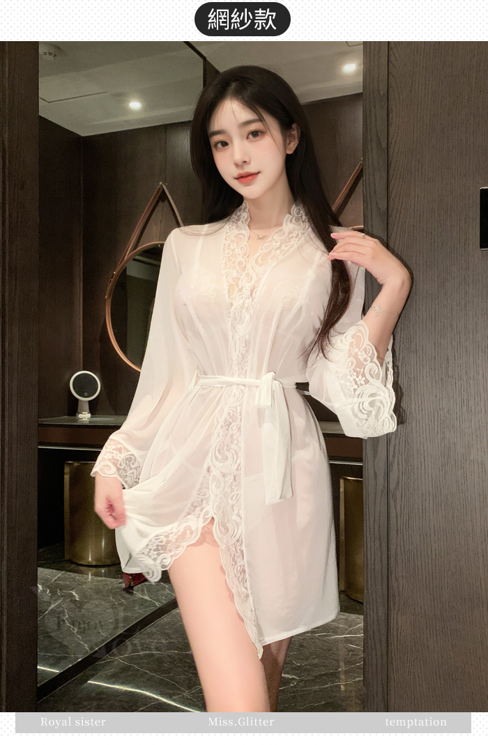 情趣睡衣!蕾絲花邊比基尼百搭睡袍網紗透視三件組﹝白﹞