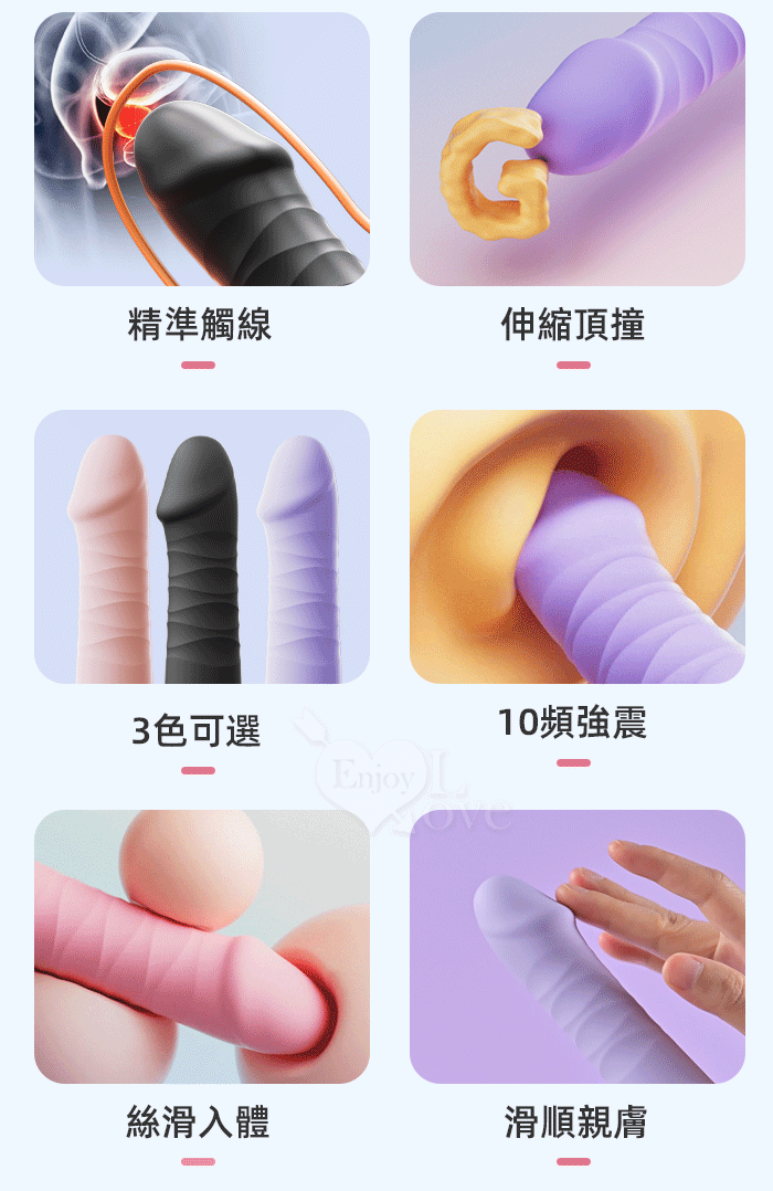 | ROSELEX 勞樂斯 ‧ 蘭博 10變頻伸縮頂撞震動老二按摩棒﹝爽滑入體+螺紋摩擦+USB充電﹞淺紫