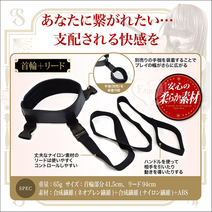 易於穿戴,柔軟的材質將滿足您的連接願望。 享受被支配的快感和支配的優越感。 ■日本原裝進口 ■外箱尺寸:16×6.6×6.6 cm ■產品尺寸:如圖所示 日文簡述: 簡単装着、柔らか素材であなたの繋がれたい願望をかなえます。 支配される快感、支配している優越感を楽しんでください。