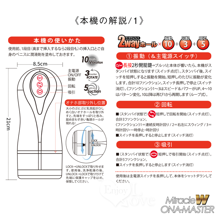 | 日本NPG.奇蹟Wオナマスター 2段式10x3x5震動迴轉吸引專家級口交技巧自慰器