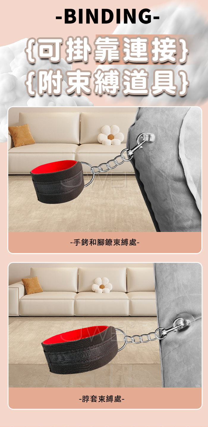 束縛氣墊床.束縛手/腳/脖銬+灰色輕柔植絨彈力性愛床墊【附贈電動打氣泵】