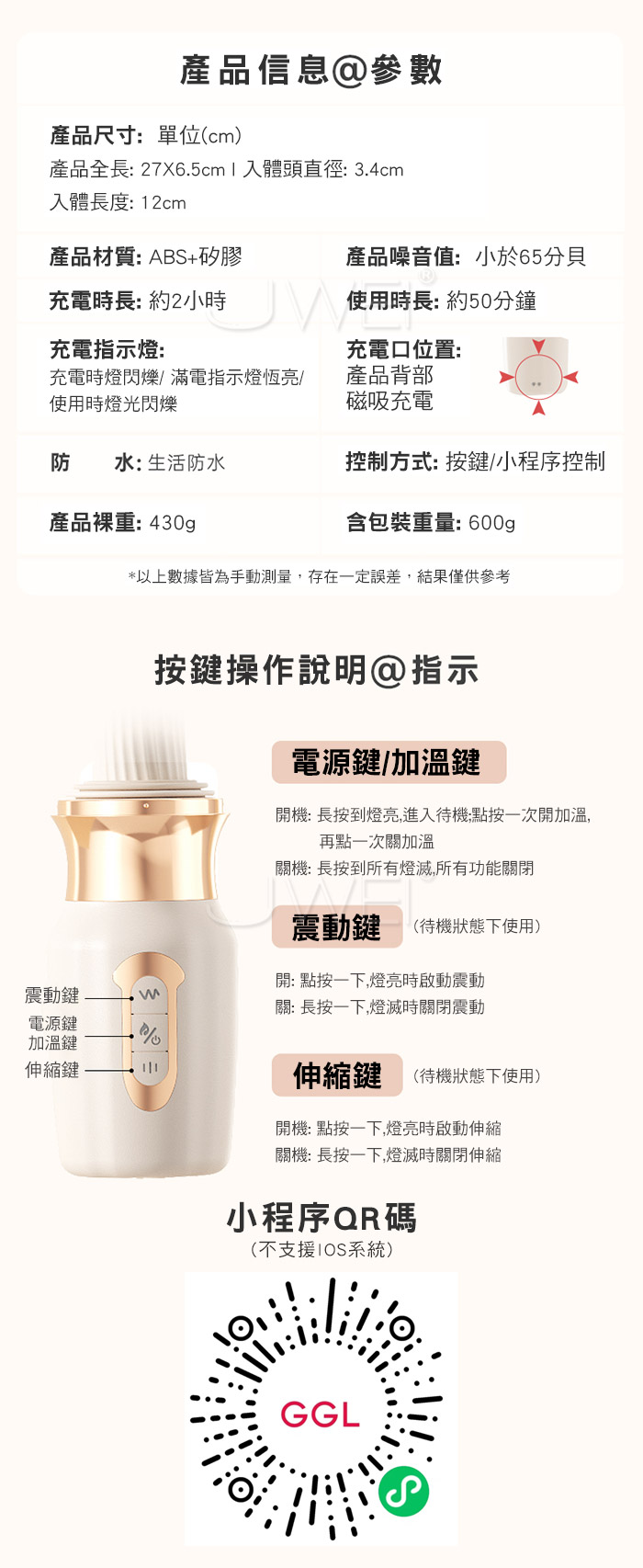 ■特點:10頻震動、10頻伸縮、加溫、APP智控(不支援IOS系統)