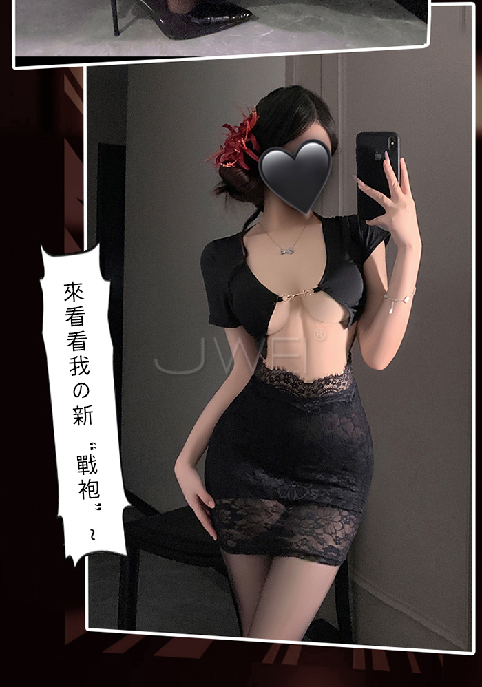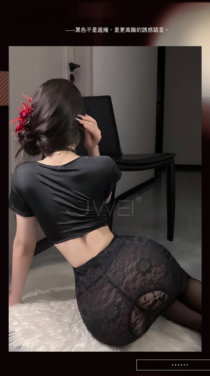 ►您現在的位置:首頁>禁欲之花.性感開胸露乳花蔓蕾絲透膚包臀輕熟秘書裝【短上衣+連身裙+T褲】