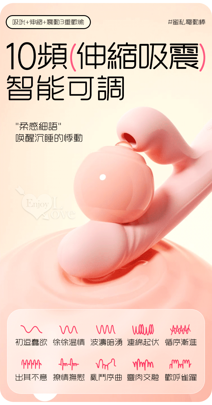 ROSELEX 蜜私 ‧ 伸⦁震⦁吸 三重爆爽多功能按摩棒﹝10頻伸縮+震動/10頻吮舔動~內外同歡~滑順親膚矽膠﹞